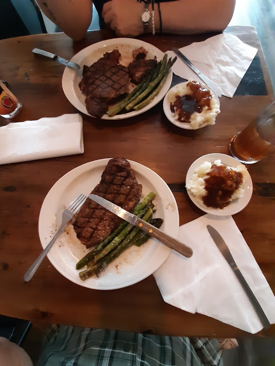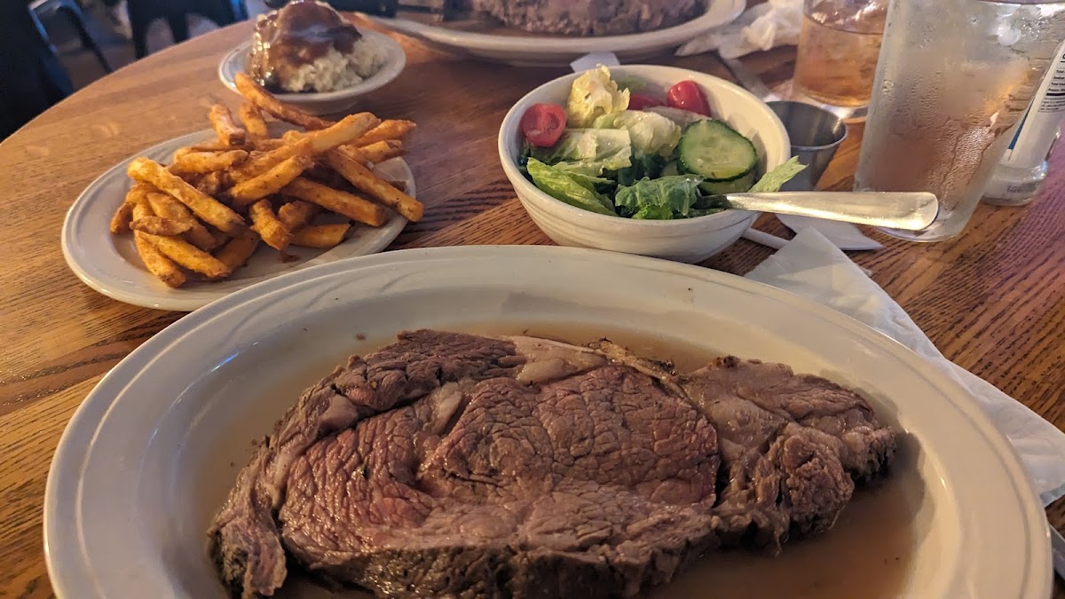 Small, quaint bar/dining experience. Music is loud and everyone is friendly. Ordered the prime rib which was fairly priced with two sides. Two prime ribs for less than $50. They do have premium sides but they are 2.50 extra. I chose French fries and side salad. The meal was good, prime rib was tender but not as tender as I like it to be. The cuts my table received were different sizes. One was bigger and I got the smaller pick which bummed me out. Will be back again for it. The place has limited parking on Main so expect to hoof it after parking.